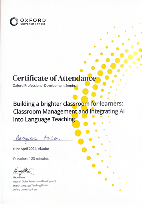 Что же привело Фаризу в профессию преподавателя? По её словам, это как быть волшебником: она делится знаниями, словно заклинаниями, и видит, как ученики их успешно применяют. Отдача от студентов — это её топливо! Когда кто-то вдруг восклицает: «Я понял!», её сердце поет. А видеть результаты? Это как смотреть, как семечко вырастает в дуб: от робких "Hello" до уверенного отстаивания своего мнения на английском.