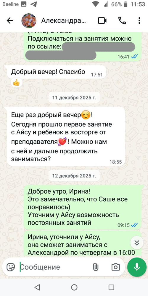 Вот например, одна ученица пришла с нуля — иероглифы для неё были просто иконками, но под чутким руководством Айсу за 3-4 месяца она сдала пробный тест HSK (1 уровня) на 170 из 200 баллов! "Я думала, это невозможно, — смеётся ученица, — а теперь заказываю димсамы не жестами!" Другая история: девушка, полная сомнений, была уверена, что у неё ничего не выйдет. Вместе они нашли её суперсилу — понимание грамматики (китайская грамматика проще, чем кажется). Усилили сильное, подтянули слабое — и вуаля, теперь она уверенно болтает о пандах и Великой стене.